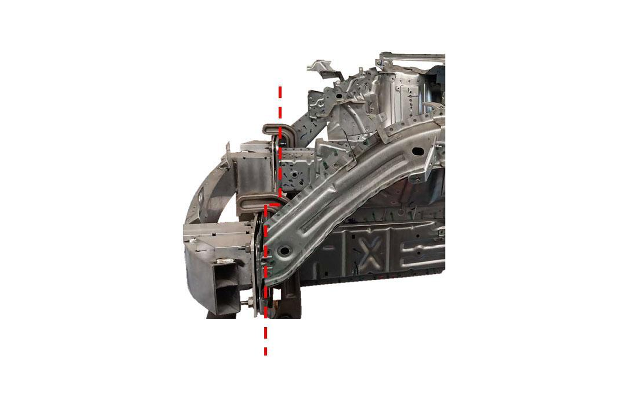 Despite a steel-intensive BIW, and a vehicle weight that is 36% heavier with 10% less crash space, an aluminum extruded bumper and crash cans offered the best business case.
