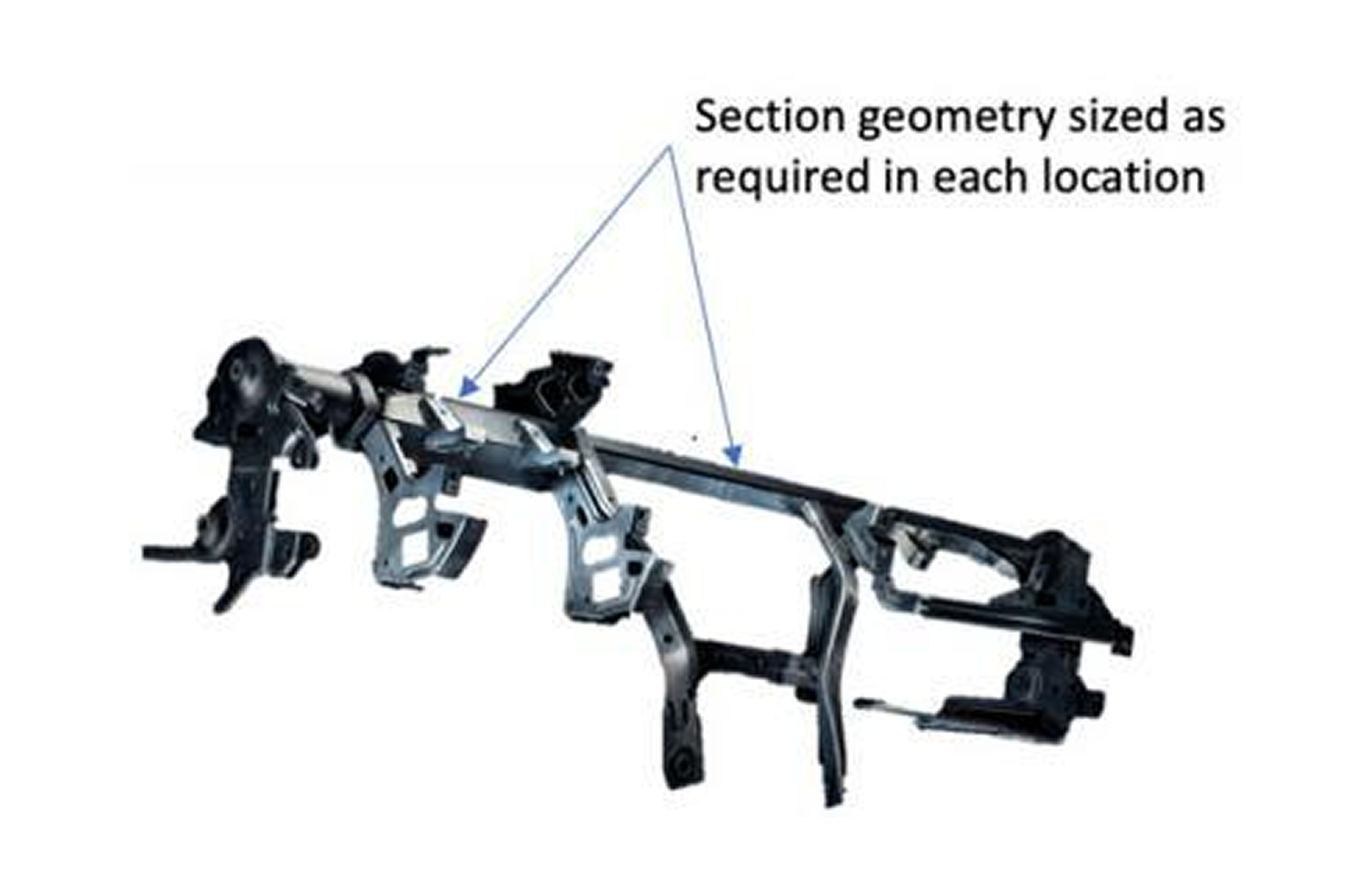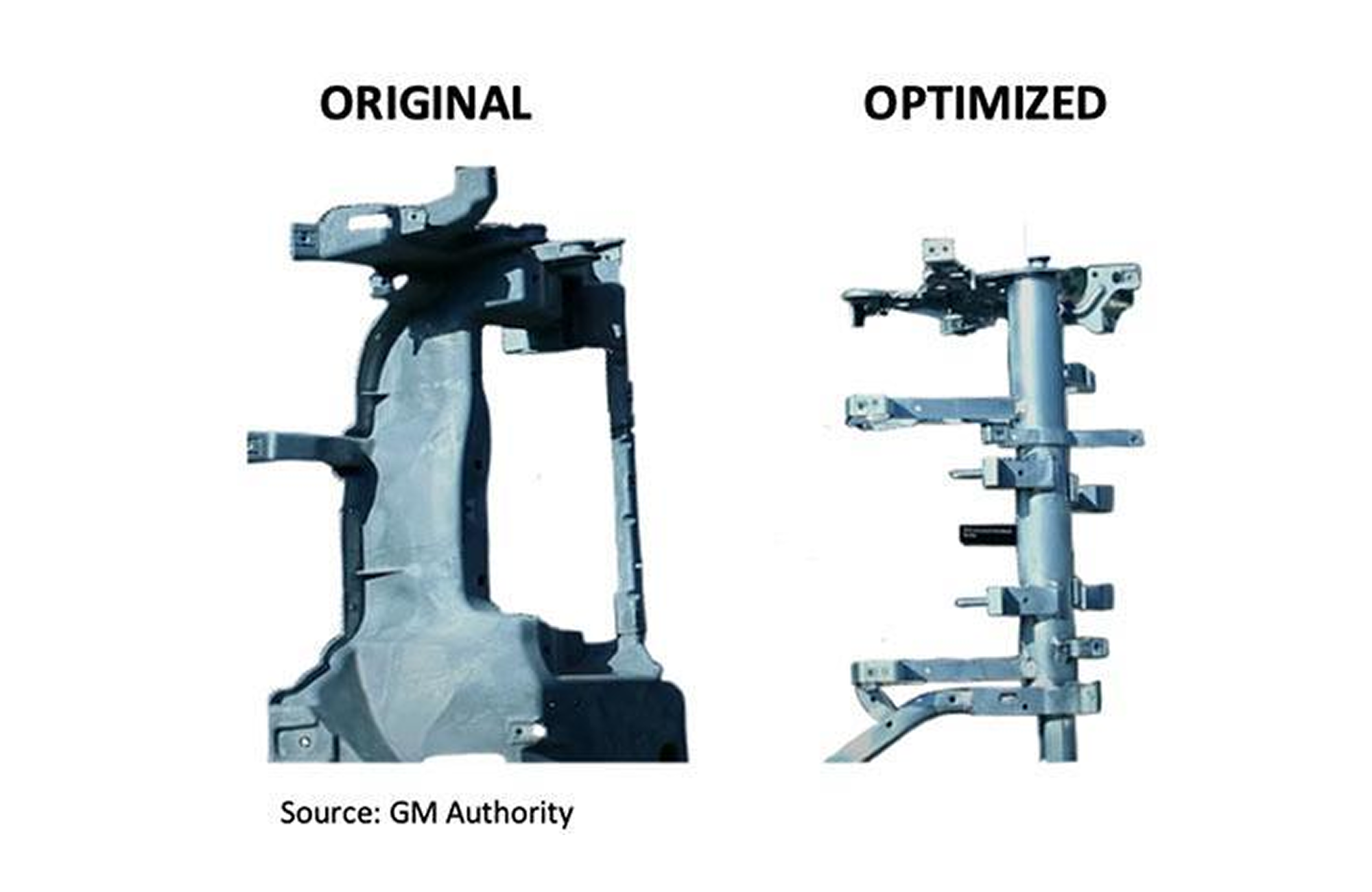 Redesign: Aluminum extrusion assembly: 14.4 lbs (6.5 kg) = 36% weight reduction