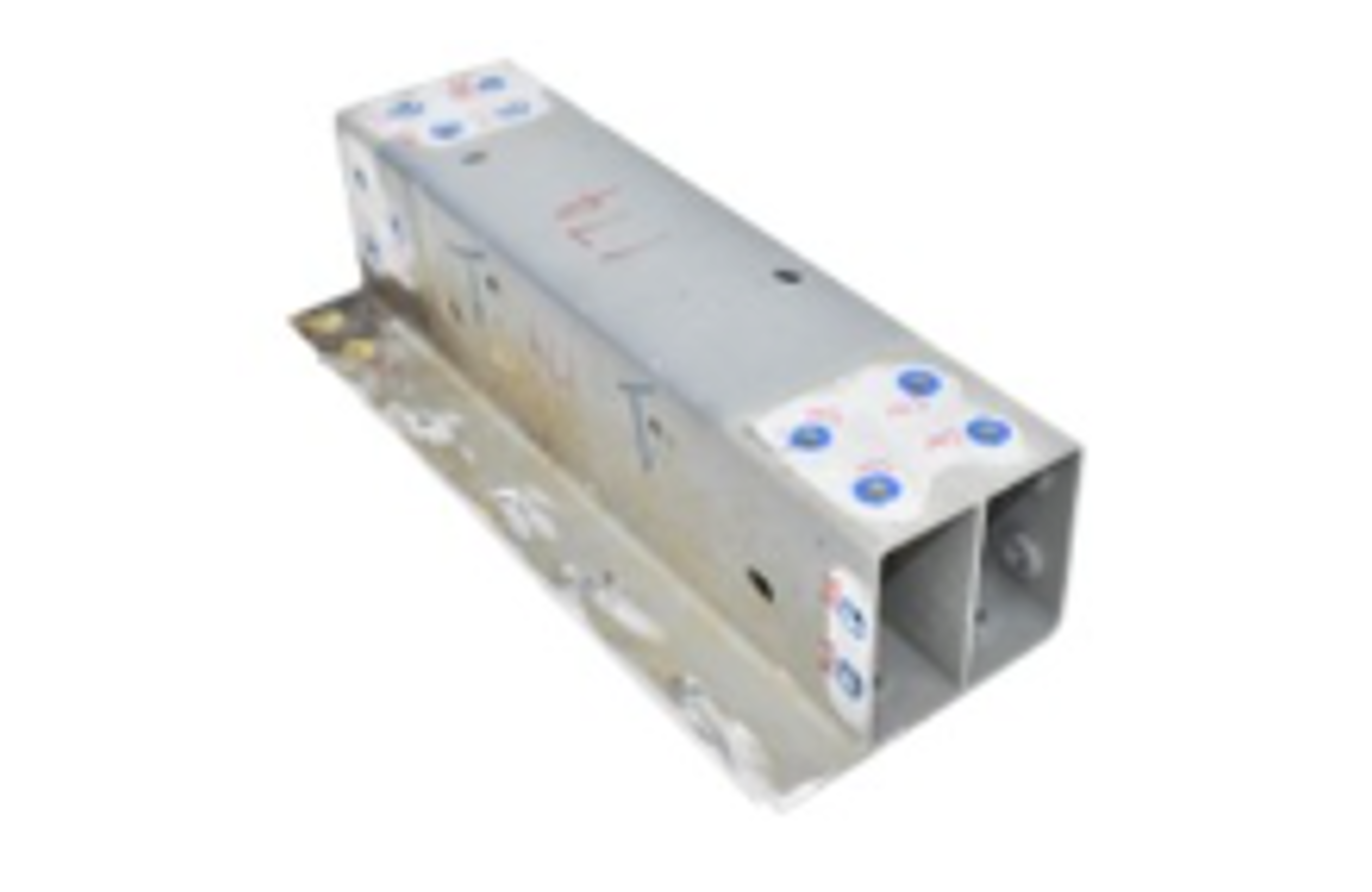 Behind the bumper beam are the crash cans. These cans look like simple shapes, and are often welded to the beams, yet they are well-engineered products. Proper alloy design typically involves yield strength along with a measure of cracking tendency, according to an excellent technical paper from the Eleventh International Aluminum Extrusion Technology Seminar-ET '16, "Extrusions for Automotive Crash Applications" by N. Parsons, J-F. Beland, and J. Fourmann of Rio Tinto Aluminum. The properly designed can crushes like an accordion, without cracking. Each fold happens in a specific location as initiated by a physical modification to the corners - the Jeep Compass has holes on the corners, whereas the can below has impressions on the flat surfaces.