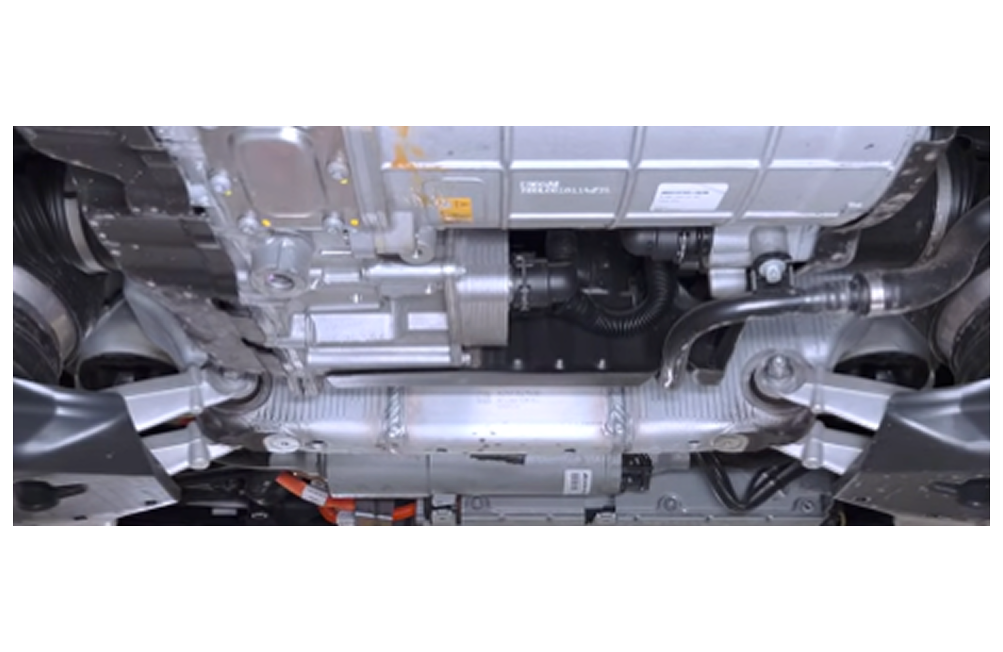- Between the subframe and the battery is this extrusion that provides debris protection & structural support.